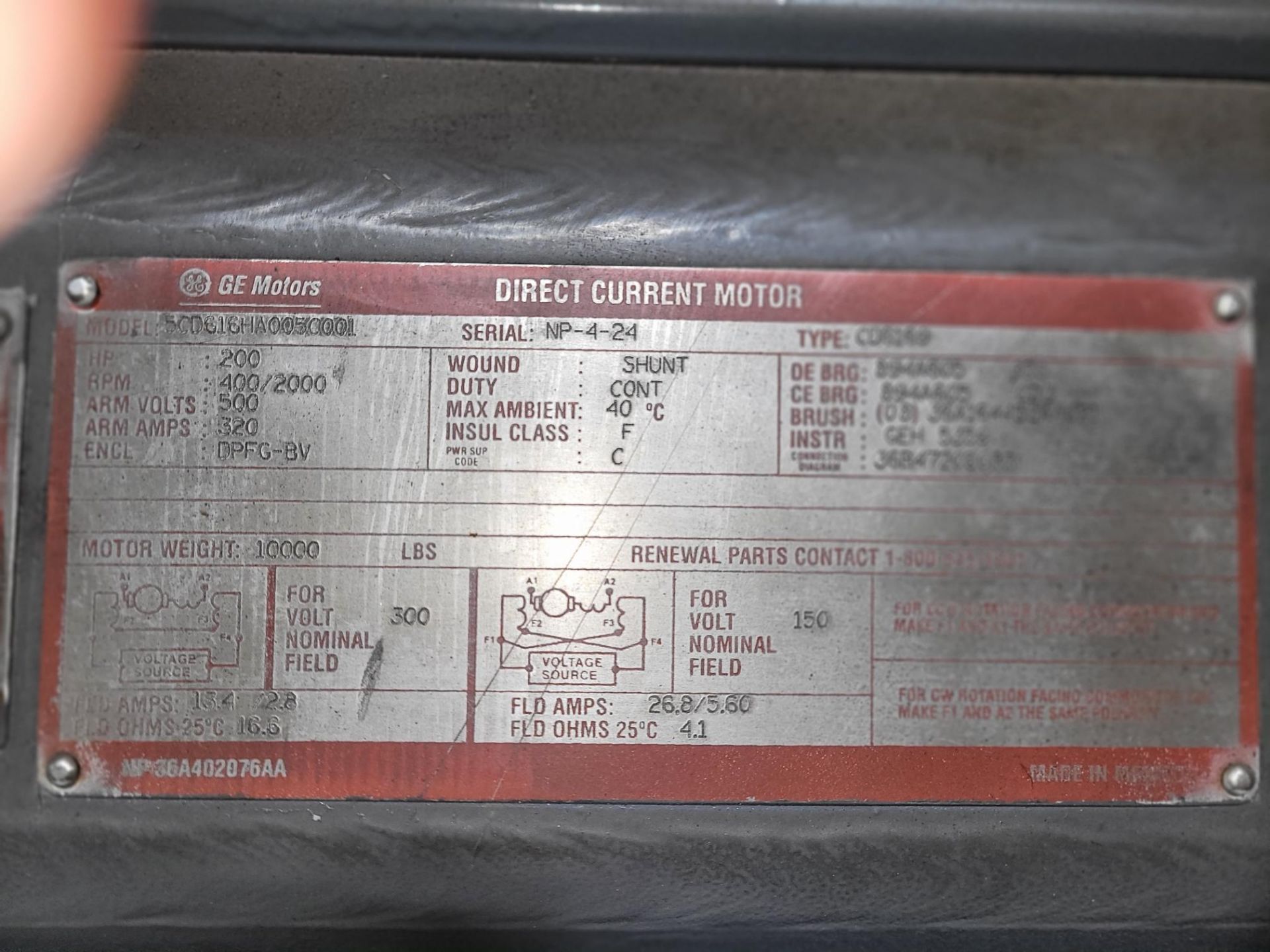 200 HP DC Motor & Transformer – GE Model 5CD606HA0050001, S/N NP-4-24