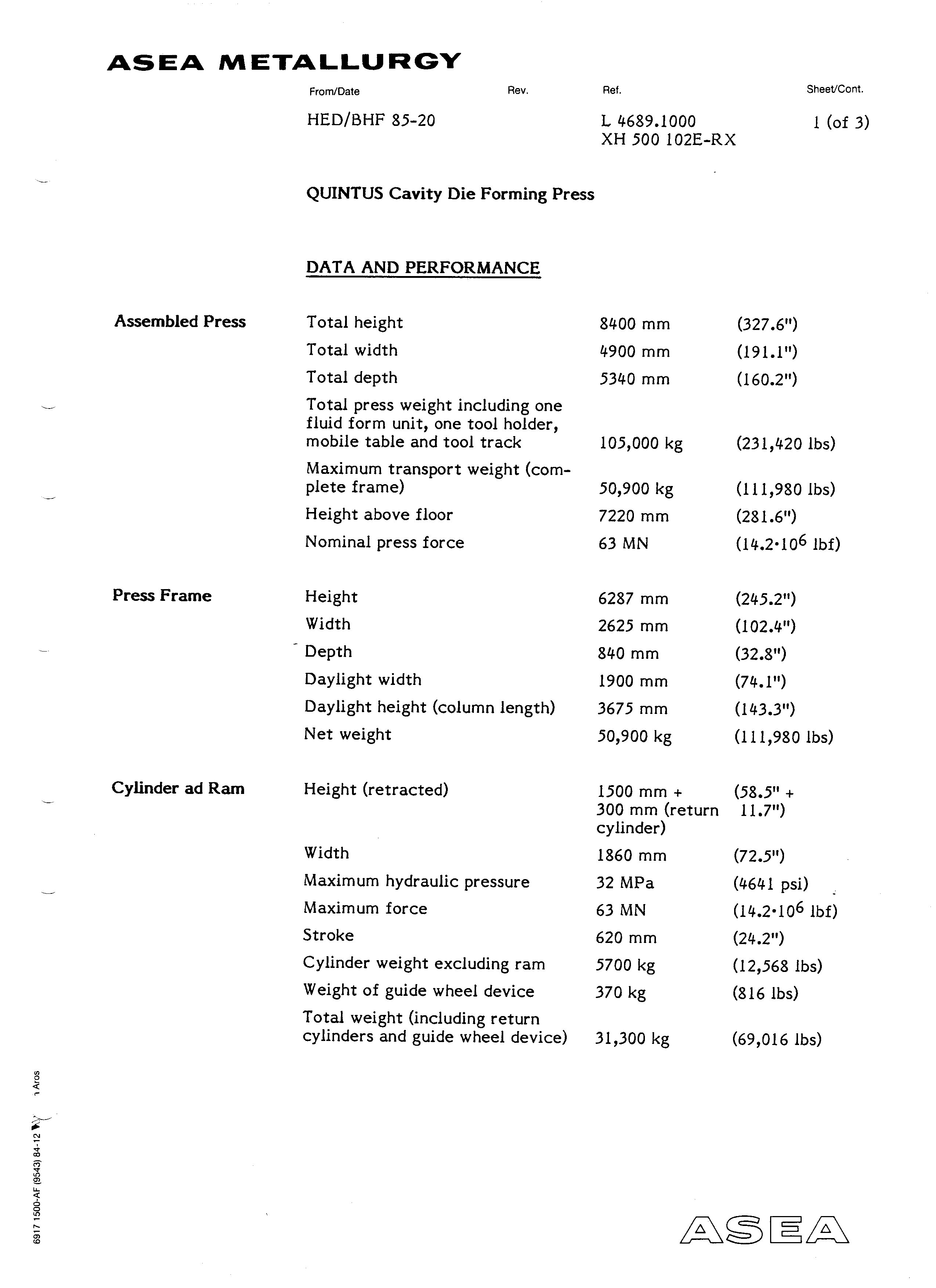 All the specification are in the pictures. This machine is in storage in the USA. We have all the diagrams, paperwork, etc...