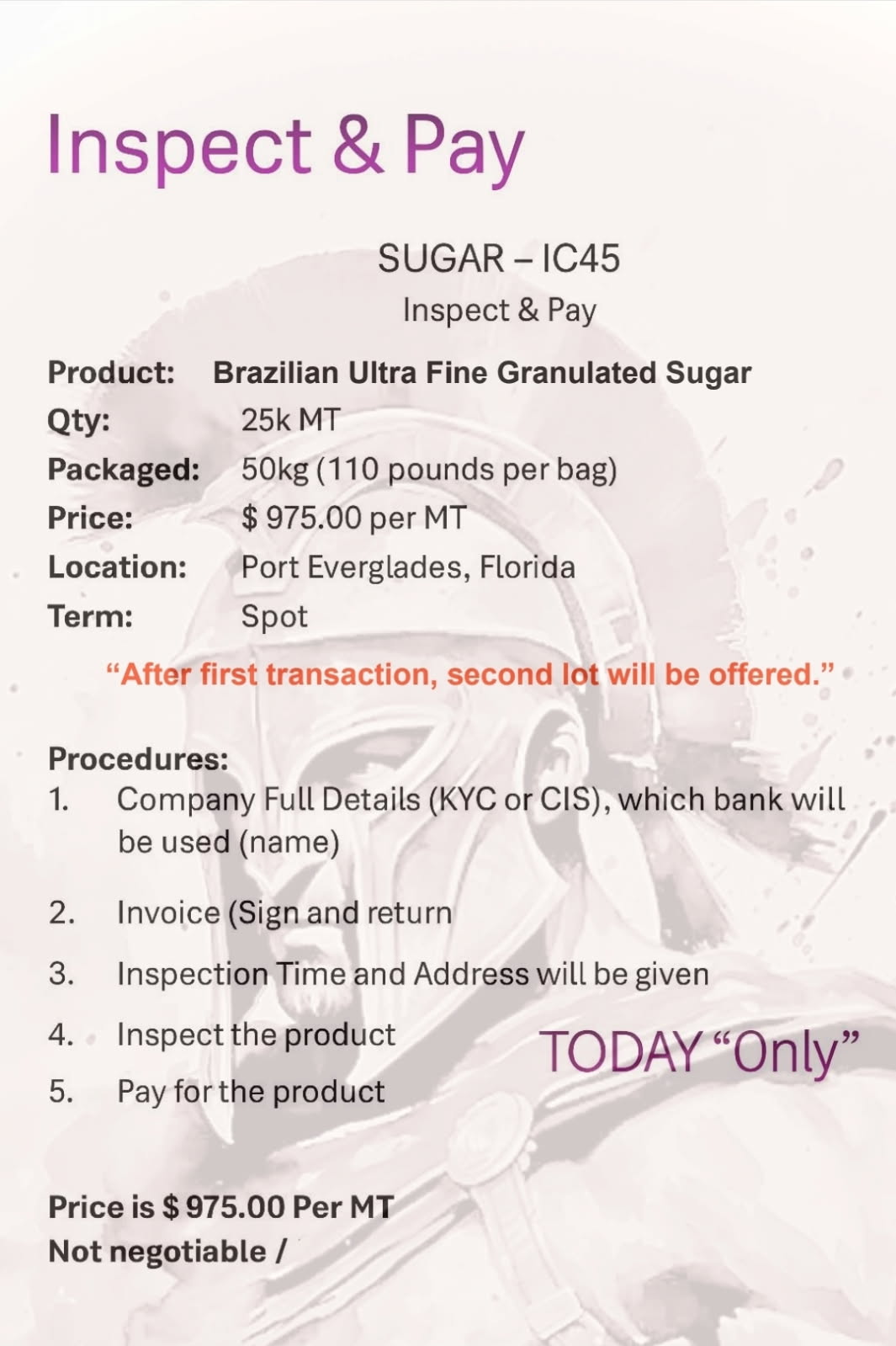 BRAZILIAN ULTRA FINE GRANULATE SUGAR, 25,000 MT SPOT