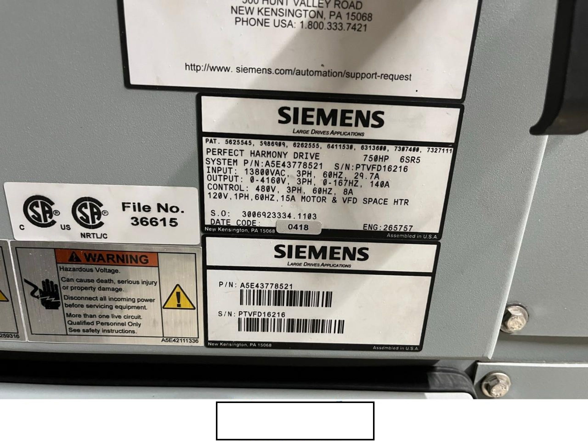 SIEMENS HARMONY DRIVE 750 HP P/N A5E43778519 MANUFACUTRED 2018