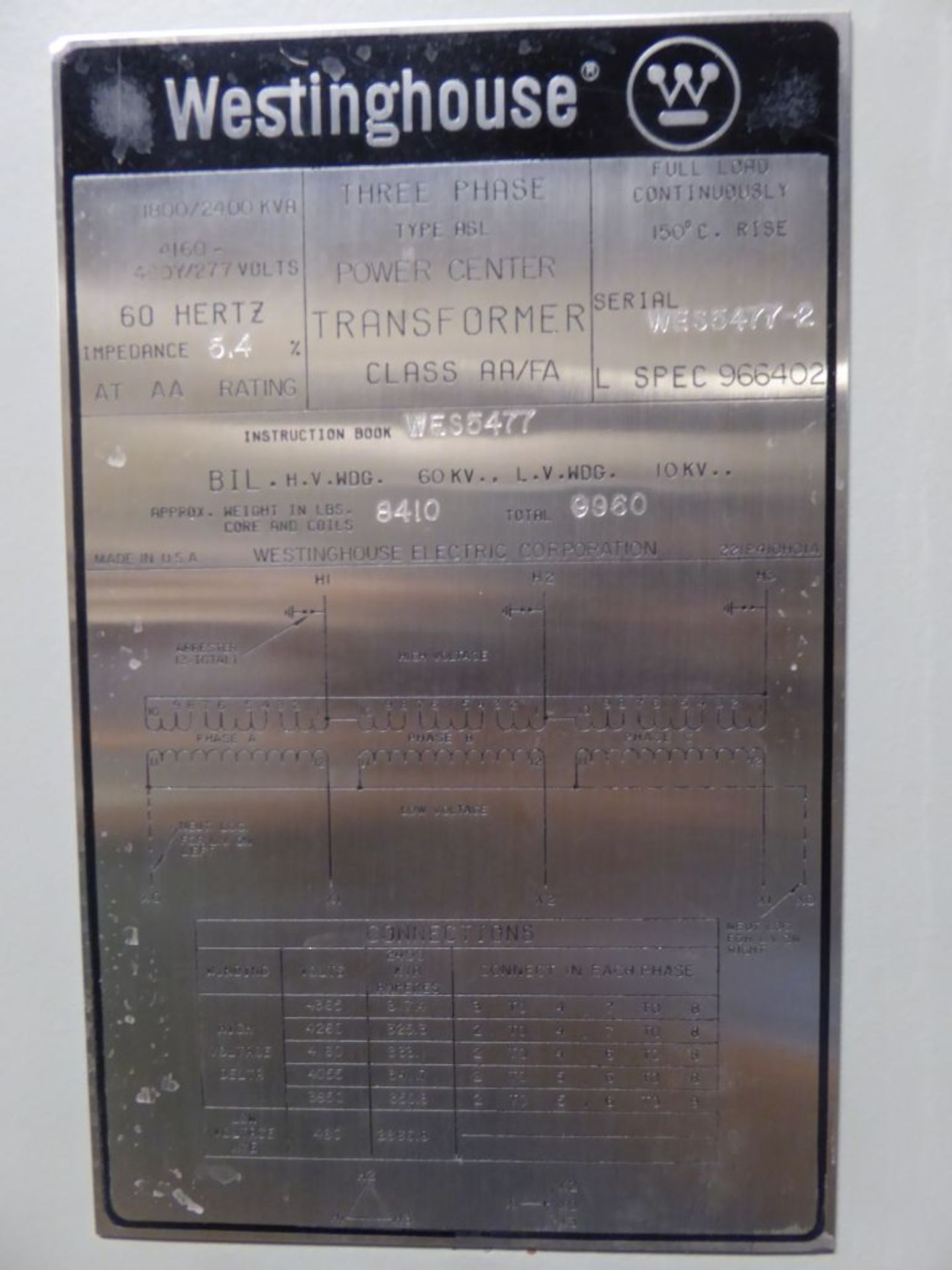 1800/2400 KVA; 4160-480Y/277V; (1) Westinghouse Type WLI Interrupting Switch, Nom. 4.8 KV, Max 5.0 KV, 600A