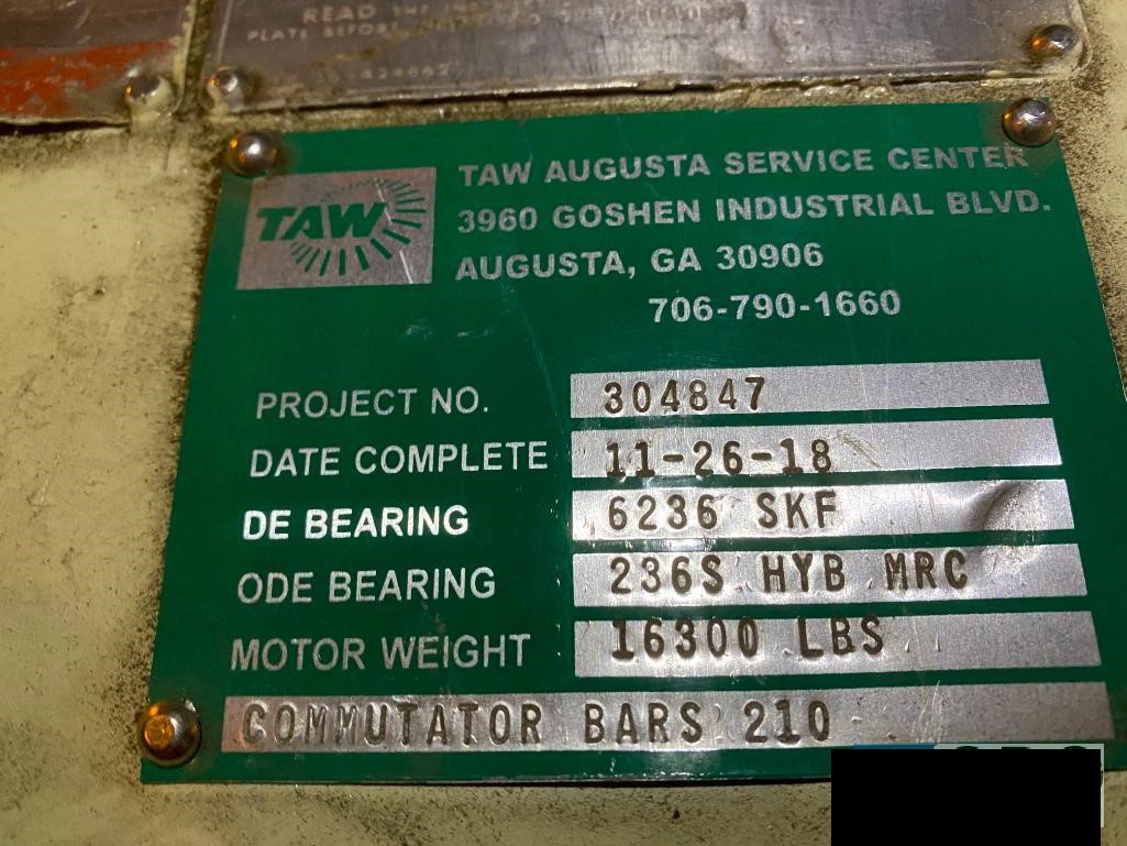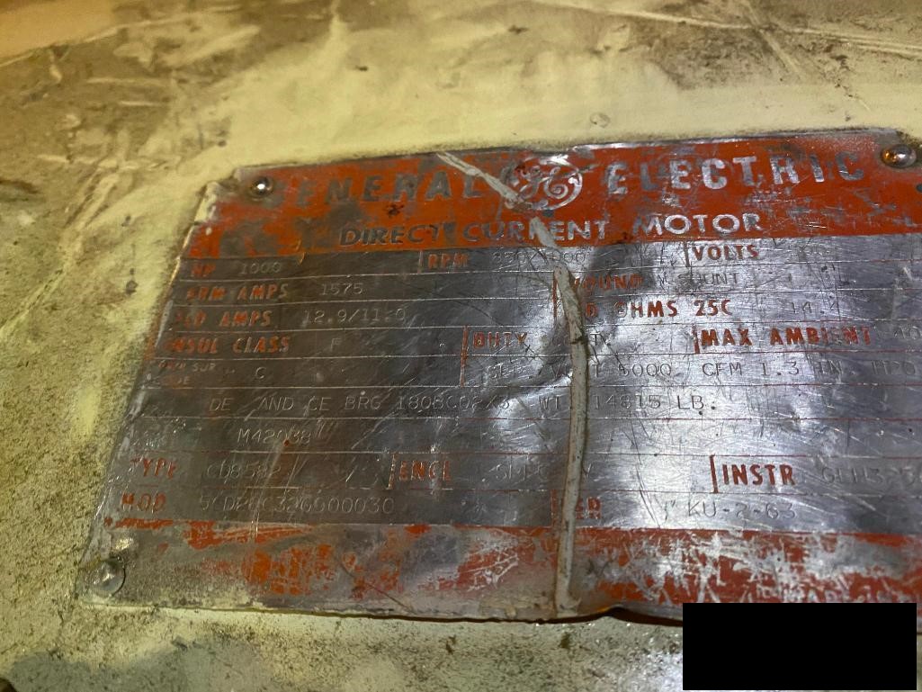 GE 1000 HP DC drive motor 500 volts 850/1000 rpm, rebuilt 2018