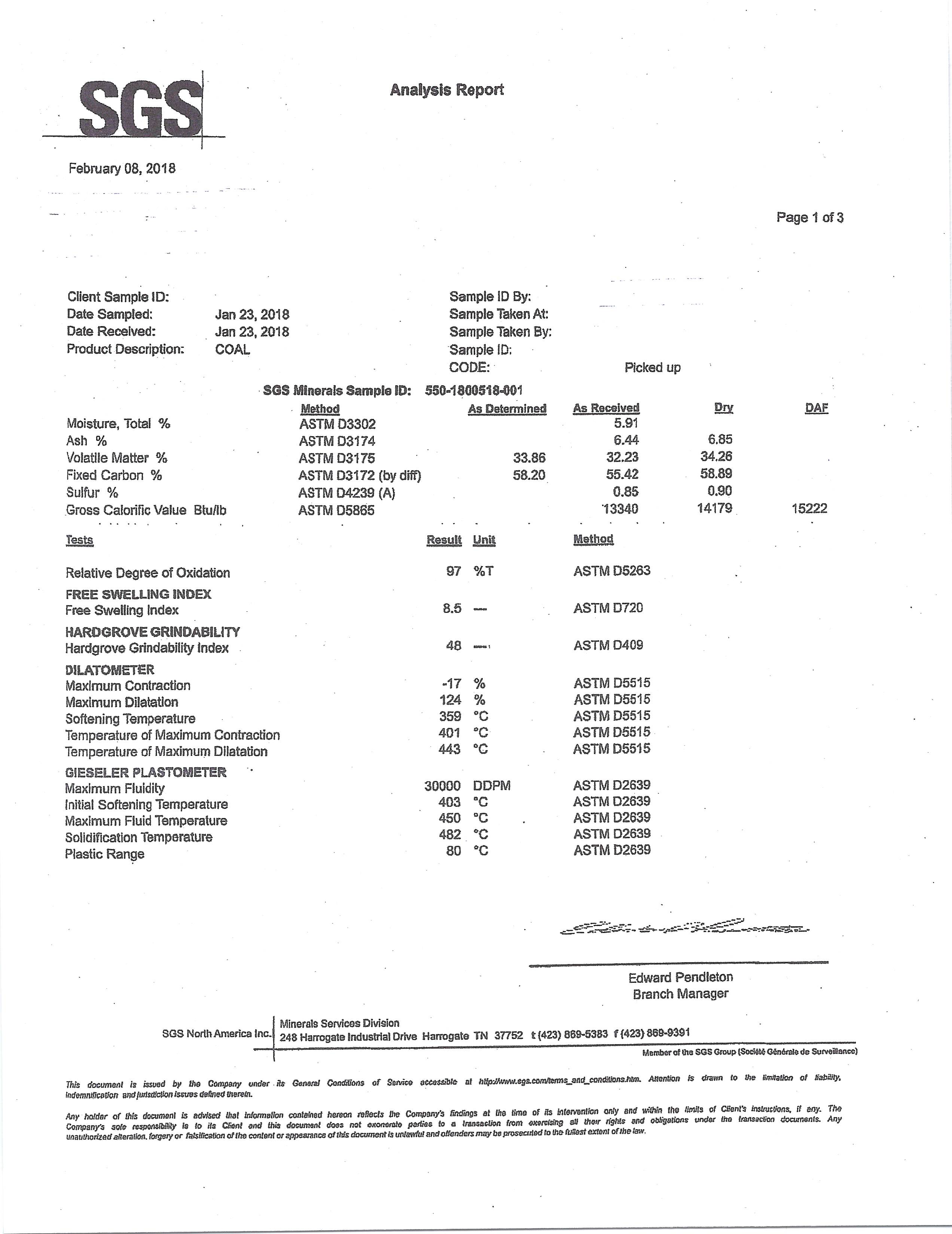 1. List of coal products required with a copy of current buyer name, contact, specifications, monthly tonnage and price point.