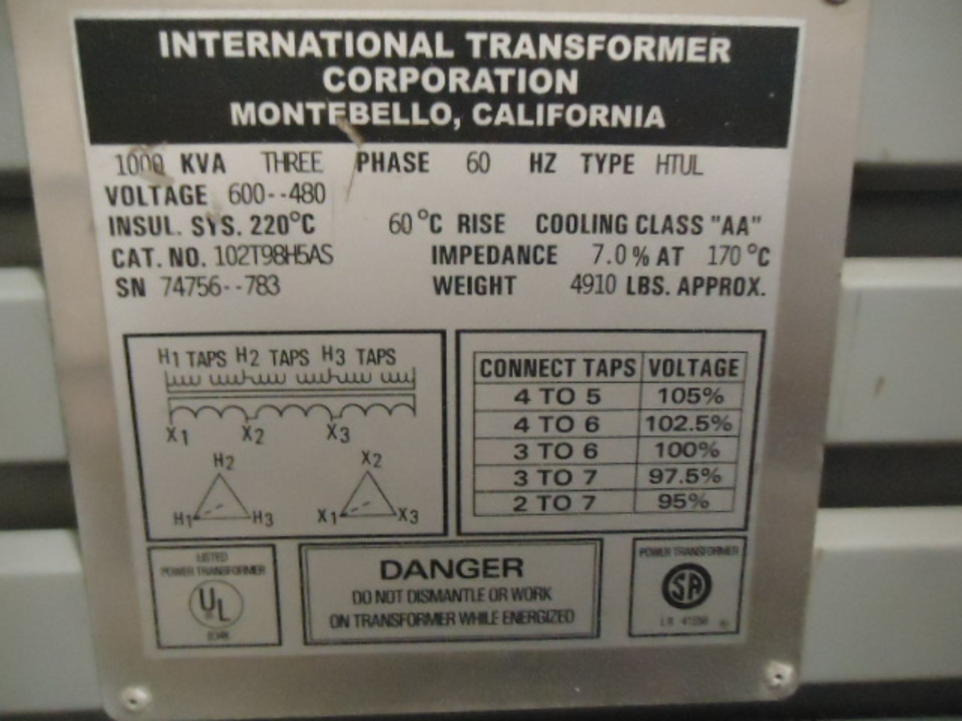 International Transformer Corp. 1,000 KVA