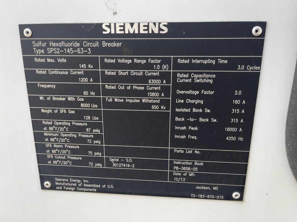 Siemens Type SPS2-145-63-3 Switch