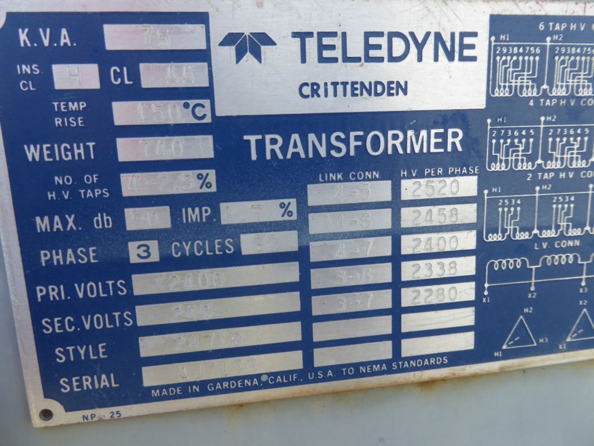 Teledyne 75 KVA Transformer HV: 2,400; LV: 240