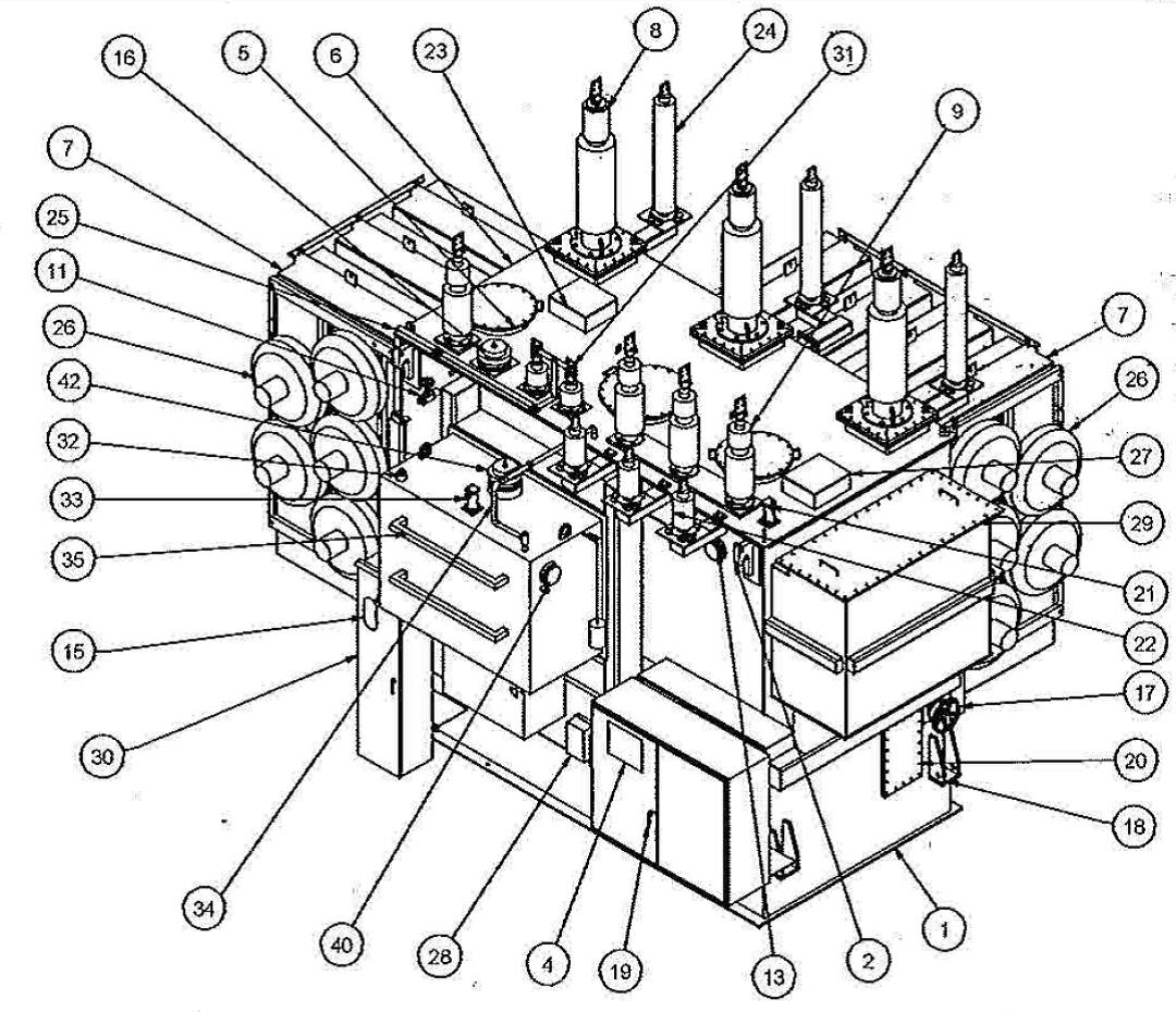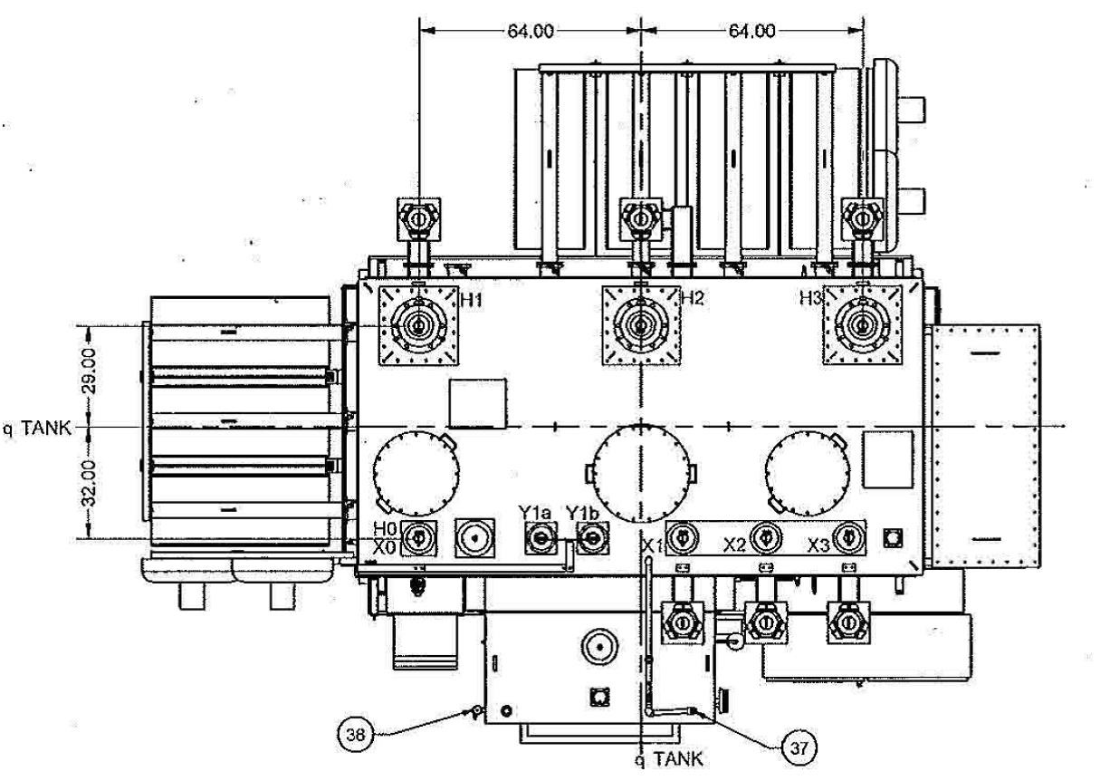Load Tap Changing - 33 steps ranging from 30,964 thru 38,041 Volts